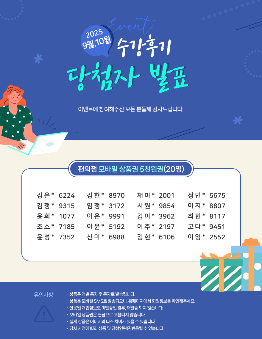[이벤트] 2025년 9월, 10월 수강후기 이벤트 당첨자 발표!